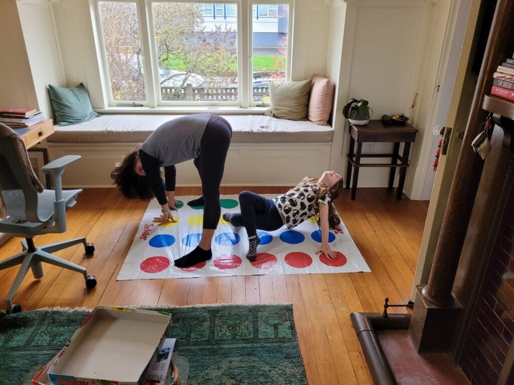Here’s Adriana playing Twister with Hattie Jr in my sister Julie’s house: