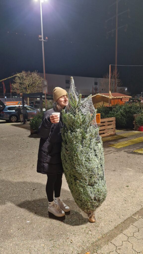 And finally, here is the Sanji-under-the-tree photo. It turned out too well not to share the whole photo – it looks like a Christmas card.